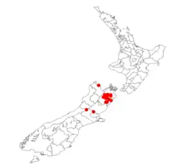 - ^ a b Lange, Peter J. de; Rolfe, Jeremy R.; Barkla, John W.; Courtney, Shannel P.; Champion, Paul D.; Perrie, Leon R.; Beadel, Sarah M.; Ford, Kerry A.; Breitwieser, Ilse; Schönberger, Ines; Hindmarsh-Walls, Rowan (1 May 2018). "Conservation status of New Zealand indigenous vascular plants, 2017" (PDF). New Zealand Threat Classification Series. 22: 1–86. OCLC 1041649797.