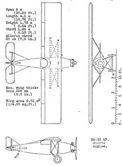 Two years later, in June 1926, it was flying at Orly in a Civil Pilot's Union event with the same 45 hp engine.[4] A further ten years later, after a period without notable public appearances, it was a contestant in the annual 12 heures d'Angers event in the under two litre category,[5] powered by a 1.08 litre (648 cu in) 20 kW (27 hp) Ava 4A flat-four engine.[6] It did not finish amongst the winners.[7]