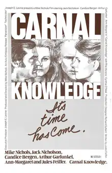 Carnal Knowledge is a 1971 American comedy-drama film directed by Mike Nichols and written by Jules Feiffer. It stars Jack Nicholson, Candice Bergen, Art Garfunkel, and Ann-Margret, with Rita Moreno and Cynthia O'Neal.