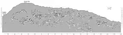 Carnegie Quarry is located in the Brushy Basin Member of the Morrison Formation. The site has been dated to between 150.91 and 150.04 million years ago.[5] The quarry is located in a sandstone bed known as the Quarry Sandstone. The Quarry Sandstone is unusual for the upper Morrison Formation in being relatively coarse-grained.[6] The depositional environment has been subject to various interpretations. Kenneth Carpenter considered it to have been deposited in a braided river that he called the Quarry River, which he compared to the modern-day Platte River.[7] In contrast, Brezinski and Kollar interpreted the Quarry Sandstone to represent a crevasse splay, with the accumulation of skeletons at Carnegie Quarry having been deposited within one of the distributary channels over the course of at least two flooding events.[6] The quarry bed is tilted 67° from horizontal.[3]