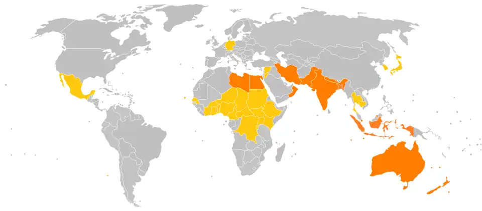 Varying sources differ slightly on exactly which countries require a carnet, however generally the following countries require a carnet for private vehicle entry.[3][4][5][6]
