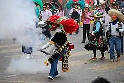 While the Carnival in the city of Veracruz is thoroughly modern, those celebrated in north of the state are much more traditional, including elements such as prayers for good crops and the well being of the community.[36] Rural Veracruz carnivals near Xalapa feature various people in bull costumes, which often have elaborate wood masks. These persons use canes, large decorated capes and flowered headdresses.[27][37] Some of the notable celebrations in the Totonacapan area include those of Ojite de Matamoros, Solteros de Juan Rosas and Arroyo Florido. In Ojite de Matamoros, men dress as women, priests, doctors and hunchbacks and perform a dance that recalls the struggles between the indigenous and the Spanish. These festivities last about fifteen days ending with a rite called the “corta-gallo” which involved the sacrifice of a number of fowl. In Arroyo Florido the festival is dedicated to the Devil considered to be the owner of all earthly goods. In Solteros de Juan Rosas the festival is only four days and includes a ceremony to bless the masks that the dancers wear. In all of these celebrations the preferred music is traditional Son and Huapango.[36]
