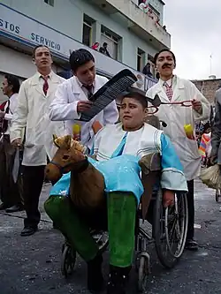 The carnival includes four major stages: the Carnavalito (Children's Carnival), the Arrival of the Castaneda Family, Blacks' Day and Whites' Day, the last one being considered most important because of its grand parade. However, there are also pre-carnival activities and in recent years, 7 January is considered the final day of the carnival, with the celebration of the "Day of the Guinea Pig" when locals and tourists enjoy typical regional dishes.[7]