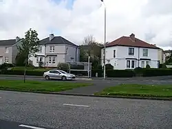 The housing scheme which is now known as Carntyne was built during the inter-war years to provide more housing for the overcrowded population of inner Glasgow.[4][5] At the time, it was at Glasgow's most easterly point and was built around the A8 to Edinburgh, and therefore the streets are named after places in and around Edinburgh: Haymarket Street, Inverleith Street, Morningside Street, Gorebridge Street etc. with the exception of Carntyne Road and Carntynehall Road, the latter referring to the large house which stood in the centre of the district from 1802 to the 1920s.[6][7][2]