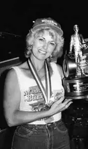 By winning the 1986 IHRA alcohol funny car (A/FC) national title, Burkett became only the second woman to win a national title in a professional class,[3] following Shirley Muldowney.