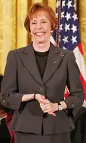 Burnett also received various honors including 2 Peabody Awards, a Screen Actors Guild Life Achievement Award and a Star on the Hollywood Walk of Fame.[69][70][13][24] In 2003, she was honored with the Kennedy Center Honor.[71] In 2005, she received the Presidential Medal of Freedom, awarded to her by President George W. Bush. In 2013, she received the Mark Twain Prize for American Humor. In 2019 she became the first recipient of the Carol Burnett Lifetime Achievement Award for Television, which was named in her honor.[72]