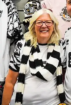 She initiated a shake-up in the club's boardroom in April 2023, whilst remaining a "hands on owner".[26] Darrell Clarke was also sacked later that month and his assistant, Andy Crosby, was appointed as the club's new manager.[27][28] Crosby was sacked on 5 February 2024.[29] With fan opinion turning hostile towards Flitcroft, Shanahan published a lengthy open letter on the club website defending Flitcroft and his achievements as Port Vale's director of football.[30] Darren Moore was hired as the club's new manager on a five-and-a-half-year contract, which Moore said was "a testament to the long-term vision of the club".[31] David Flitcroft was sacked. Port Vale was relegated at the end of the 2023–24 season. At this point, Shanahan apologised to the fans and stated her intent for the club to gain promotion again.[32] She also decided to do less public speaking after she was filmed without her knowledge while giving an after-match speech in the Valiant Suite.[33] The club secured an immediate promotion in the 2024–25 season and Shanahan stated that they were stronger than they had been the previous time they went up.[34] Both Shanahan and the club itself were awarded Honorary Freedom of Stoke-on-Trent in recognition of eminent services to the city.[35]