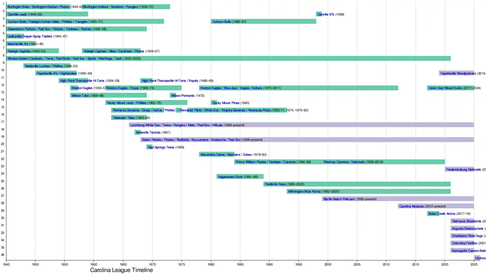 - ^ Terranova, Rob (April 4, 2022). "Then and now: Carolina League". MiLB.com.