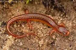 The Carolina Sandhills salamander (Eurycea arenicola), is a species of lungless salamander endemic to the state of North Carolina in the United States, where it is only found in the Sandhills region.[2][3] These species are known for their coloration and ecology. Researchers decades ago separated the species into northern and southern groups and found that the southern and northern Sandhill salamanders differ in coloration, size, and natural history.[4]