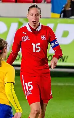 Caroline Agnès Abbé (born 13 January 1988) is a Swiss former footballer who played as a defender[3] and for the Switzerland national team as their captain.[4]