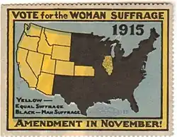 - ^ a b "Poster Stamp : Vote for the woman suffrage amendment in November". Ann Lewis Women's Suffrage Collection. Retrieved 2019-01-20.