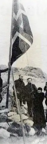 On 20 February 1935, the expedition made landfall somewhere on the Antarctic continental shelf.[7] Mikkelsen left the ship and participated in raising the Norwegian flag and in building a memorial cairn.[8] Mikkelsen never made any recorded claims to have landed on the mainland, but was initially thought to have landed on the Vestfold Hills not far from the present Davis Station.[3] She did not publicly speak about her Antarctic voyage until sixty years after her landing in 1995 when she spoke about her journey to the Norwegian newspaper Aftenposten having been contacted by Davis Station Leader Diana Patterson.[9][10]