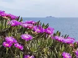 The pink or purple flowers are very showy and the plant is frequently cultivated, especially in mild coastal climates. Its fruits are edible and are used in southern Africa to make a traditional jam. In the wild they are grazed by tortoises and other southern African herbivores. In some areas, such as the south-west of England, it has become naturalised on sea cliffs and can outcompete native species. [2]