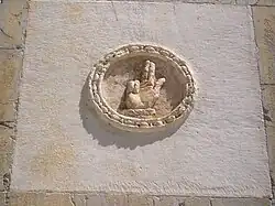 The lower section of the façade and the side area near the St. John Portal are characterized by a bichrome decoration with geometrical marble tarsias. This part of the building can be dated to the early 12th century by the influences of the Pisan Gothic style on the capitals and the architrave as well as the similarities in the alternating black and white marble patterning with the Tuscan churches of Pisa and Lucca.[1] This style was also widespread in Liguria at the time, as shown by the similarity of the cathedral's portal with that of Genoa Cathedral, finished before 1142. The sculptors of the main portal and of the capitals of the first three spans in the interior belonged to the school of Maestor Wiligelmo.[1]