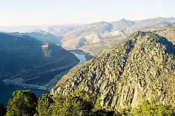Carrazeda de Ansiães has a lot of its territory integrated within the Alto Douro, characterized by boxed-in valleys along the Douro and Tua Rivers, with steep inclines known for its wine-producing vineyards characteristic of Porto.[4] The lands are covered in olive, almonds and fig orchards, in addition to peaches, wheat, pears, lands for the raising of dairy- and beef-cattle, sheep and honey production.[4]