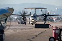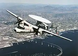 The United States Navy's Carrier Airborne Early Warning Weapons School, more popularly known as CAEWWS (historically known as TOPDOME), is an American military unit that develops and teaches E-2D and E-2C Hawkeye tactics, techniques, and procedures (TTP) to selected Naval Aviators and Naval Flight Officers. CAEWWS originated in the early 1980s as the tactics department of VAW-110 on Naval Air Station Miramar, California, but later commissioned on 13 July 1988 as an independent command.[1][2][3] Today CAEWWS is incorporated into the Naval Aviation Warfighting Development Center (NAWDC) as the command and control (C2) weapons school along with the Navy Strike Fighter Weapons School (TOPGUN), Airborne Electromagnetic Attack Weapons School (HAVOC), Navy Rotary Wing Weapons School (SEAWOLF and SEAHUNTER), Maritime Intelligence Surveillance Reconnaissance Weapons School (MISR), and STRIKE (historically known as Strike University).[4]