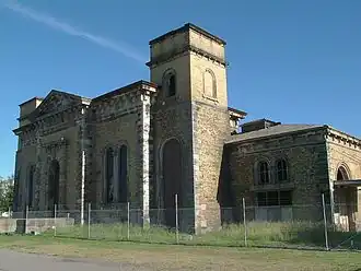 The Carrington Pump House, pictured, supplied power to a series of cranes which operated along 'The Dyke' loading ships with coal and other freight.[5] This is probably the most significant surviving building from Newcastle's nineteenth century industrial past. These cranes were of the latest technology, built by Armstrong Whitworth in Newcastle upon Tyne.