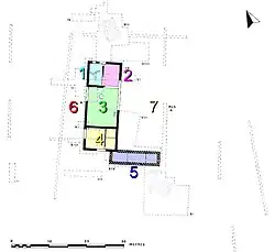 The main building consisted of the following rooms and features: [3]