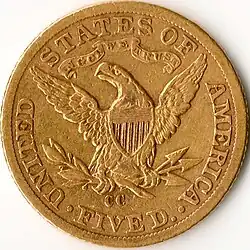 - Half eagle or $5.00 gold (1870–1884 and 1890–1893)