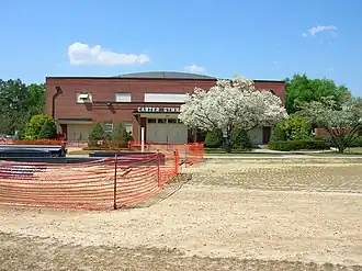 Carter Gymnasium is a 947-seat multi-purpose arena in Buies Creek, North Carolina. It was previously home to the Campbell University Fighting Camels men's basketball and women's basketball teams. It was one of the smallest college basketball venues in Division I (the G. B. Hodge Center, home to the University of South Carolina Upstate's program, is the current smallest Division I men's basketball arena). The building was named for textile executive Howard Carter. Built in 1952 and opened in 1953, the dimensions of the basketball court are smaller than regulation, but a grandfather clause allowed Campbell University to continue its tenure in the division. The Fighting Camels began play in 2008 in the new John W. Pope, Jr. Convocation Center. The new $30 million arena seats 3,000 spectators for athletic events.[1]