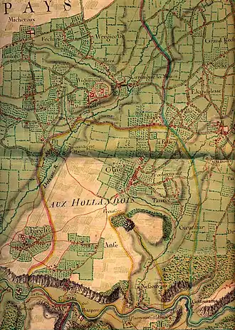 - Carte de Cassini - Carte manuscrite de la rive droite de la Vallée de la Vesdre par les ingénieurs géographes français avec la collaboration de Cassini, 1745-1748. Vincennes, Archives de la Guerre. 4.6. B 36 à 42, feuille F. in Etienne Helin, Lemoine Isabeau Claire, Bruxelles, Crédit communal, 1980.