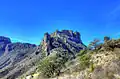 Casa Grande Peak is located in Big Bend National Park and the Chisos Mountains. It ranks as the fifth-highest peak in this park, mountain range, and county, but only the 26th-highest in Texas.[2][4] The peak is an extra-caldera vent, or volcanic dome, of the Pine Canyon caldera which formed about 32–35 million years ago during a period of volcanic activity.[5] Although modest in elevation, topographic relief is significant as the summit rises 2,000 feet (610 m) above Chisos Basin in less than 1 mile (1.6 km). Based on the Köppen climate classification, Casa Grande Peak is located in a hot arid climate zone with hot summers and mild winters.[6] Any scant precipitation runoff from the mountain's slopes drains into the Rio Grande watershed and the lower slopes of the peak are covered by juniper, oak, and piñon. "Casa Grande" is Spanish for "big house." The mountain is so named because it resembles a large castle, and the toponym was officially adopted in 1939 by the United States Board on Geographic Names.[3]