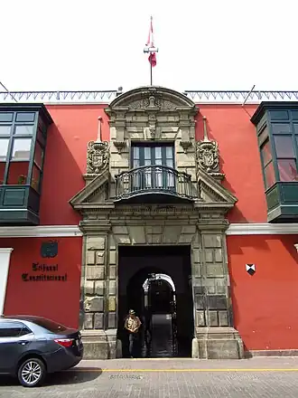 For a long time, it was the headquarters of the House of Culture of Peru (and its successor) during the military government of Ricardo Pérez Godoy. After the promulgation of the 1993 Constitution, the local headquarters of the Constitutional Court of Peru was installed there in 1996.[4]