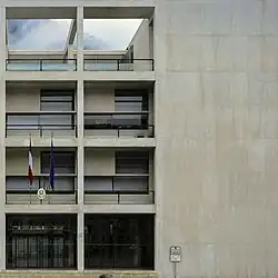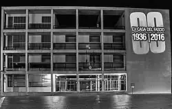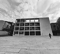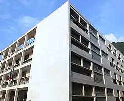 The Casa del Fascio of Como (Italian pronunciation: [ˈkaːza del ˈfaʃʃo, ˈkaːsa -]), also called Palazzo Terragni, is a building located in Como, Italy, in the Piazza del Popolo (former Piazza Impero), considered one of the masterpieces of Italian Modern Architecture.[1] It was designed by Italian architect Giuseppe Terragni (1904–1943)[1] and it was inaugurated in 1936 as the local casa del fascio, i.e. office of the National Fascist Party.[2] After the fall of Fascism in 1945, it was used by the National Liberation Committee Parties and in 1957, it became the headquarters of the local Finance Police, who still occupy it.[2] The building has a square plan and four stories.