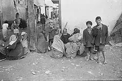 In 1941, with 40,000 inhabitants, the Mellah of Casablanca was the most populated in Morocco.[3] Poverty was deep;[4] families lived huddled together in a single room, with children in rags and often without shoes. Chronic malnutrition and epidemics were rampant especially among children who suffered from ringworm, trachoma and tuberculosis due to crowded living conditions.[5] The French authorities under the Vichy rule were not inclined to finance a partial transfer of this Jewish population to salubrious dwellings in the European neighborhood. Even after the war, they focused primarily on the construction of cheap housing in the European city with the aim of accommodating Moroccan workers from the countryside,[6][7] whom the city badly needed for its development. As for Jewish organizations, until 1945, they concentrated their efforts on Holocaust survivors.[8] It was only in the late 1940s that they started addressing the issue. From 1940 to 1960 internal immigration to Morocco occurred. The Jewish population in the countryside moved to large cities, mainly Casablanca, thus contributing to an increase in the urban population.[9][10] In 1960, the census of the Jewish population in Morocco was as follows:[11]