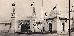The fair was held between 5 September and 5 November despite the ongoing First World War and indeed occurred during the "deadliest moment of the war in France".[3][4] The organisation of the fair was managed by the French authorities, though they encouraged the participation of the Moroccan population in the fair itself.[4] Separate pavilions were erected to house displays representative of the products of each region of Morocco and for at least one government body, there were also tents erected in which Moorish merchants displayed their goods and various curiosities.[1][4] The fair was also the catalyst for the creation of a fire department for Casablanca.[5]