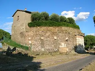 Casal Rotondo is the largest tomb on the Appian Way, to the southeast of Rome, Italy. A small farmhouse has been constructed on the top.[1]