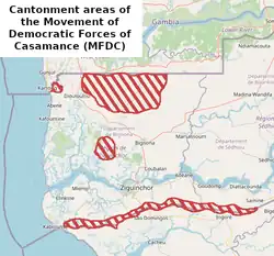 22. ^ a b c d Foucher, Vincent (2019). "The Mouvement des Forces Démocratiques de Casamance: The Illusion of Separatism in Senegal?". In Lotje de Vries; Pierre Englebert; Mareike Schomerus (eds.). Secessionism in African politics aspiration, grievance, performance, disenchantment. Cham: Palgrave Macmillan. pp. 265–292. ISBN 978-3-319-90205-0.