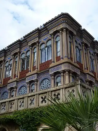 It was designed in the Moorish Revival—Arab-Andalusian style, with elaborate facades, architectural elements, and fine detailing.