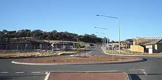 Casey will eventually occupy an area approximately 192 ha in size and accommodate 1,940 dwellings, including about 275 medium density units in the commercial centres. A Group (Shopping) Centre will be constructed in the south-east corner of the suburb near the corner of Horse Park and Clarrie Hermes Drives. A second and minor commercial centre planned for Casey will be built at the northern end of the suburb nearest the future suburb of Taylor. The Group Centre is expected to incorporate a retail core clustered around a 'central green-node' similar to Green Square in Kingston.[6] To improve accessibility of the Group Centre, Clarrie Hermes Drive has been extended through to the Barton Highway at its westerly end.
