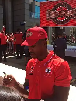 Prather debuted for Melbourne in their season opener on October 5, 2017, scoring 20 points in a 99–97 win over the Adelaide 36ers.[51] On October 28, he scored 30 points in an 87–85 loss to the Brisbane Bullets.[52] On December 16, he suffered a dislocated elbow in the second quarter of Melbourne's 84–78 win over the Illawarra Hawks.[53] He subsequently missed the next eight weeks.[54][55][56] He helped United win the minor premiership and reach the NBL Grand Final. In game two of the grand final series against the Adelaide 36ers, Prather had a game-high 20 points in a 110–95 loss.[57] He scored 23 points in both games three and four.[58][59] In game five, he recorded 19 points, 11 rebounds and five steals in a 100–82 win to help Melbourne clinch the championship with a 3–2 series victory.[60][61] With the win, Prather collected his third NBL championship to become the first player in NBL history to win three straight titles in his first three seasons in the league.[62] In 23 games for United in 2017–18, he averaged 16.7 points, 6.0 rebounds, 2.2 assists and 1.4 steals per game.