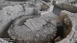 The residential part of the villa has rooms arranged around a large peristyle courtyard. The "room of the four seasons" and apsidal room have mosaic floors.