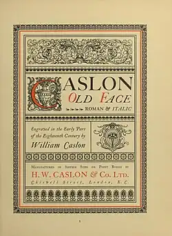 - ^ Specimens of Type. London: H.W. Caslon & Co. 1915. Retrieved 19 August 2015.