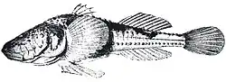 The Caspian stellate tadpole-goby (Benthophilus leobergius),[2] also known as the starry goby,[3] is a species of gobiid fish endemic to the Caspian Sea basin. It is widespread along all coasts of the Caspian Sea with exception of the central-eastern, and in the lowest part of the Volga River. In the southern part of the basin, it is mentioned near the Ogurja Ada, in the Gorgansky Bay, and in the Sefīd-Rūd River.[4] This species can reach a length of 10 centimetres (3.9 in) SL.[2]