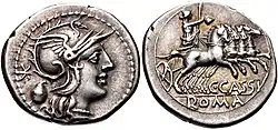 - Lucius Cassius Caecianus, triumvir monetalis in 102 BC.[39]