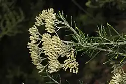 Cassinia uncata, commonly known as sticky cassinia,[2] is a species of flowering plant in the family Asteraceae and is native to inland New South Wales and the south-east of South Australia. It is an erect shrub with hairy young stems, narrow linear to needle-shaped leaves, and heads of off-white to cream-coloured flowers arranged in rounded, almost conical panicles.