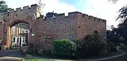 The expansion of London's railways played a significant part in the demise of Cassiobury House. The incursion of the Metropolitan Railway into Hertfordshire reached Watford in 1926 with the opening of Watford tube station and the Metro-land building programme was at its peak. Developers such as William King & Co and Charles Brightman acquired valuable land around Cassiobury to lay out new streets and build new houses in the vicinity of the new station. The former site of Cassiobury House was eventually built over by a suburban housing development.[25] In 1930, more land for the public park was purchased by Watford Borough Council. A set of grand castellated Tudor-style gates survived at the Rickmansworth Road entrance to the park for several decades, but were finally demolished in 1970 by Watford Borough Council to allow road widening along the A412 road.[26]