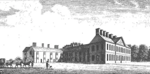 From 1846 to 1848, Cassiobury House temporarily became a royal residence when the Dowager Queen Adelaide, widow of King William IV, took up residence here. Suffering from chronic illness, Adelaide often moved her place of residence in a vain search for health, staying at the country houses of various British aristocracy. After living for a short time at Witley Court in Worcestershire, she came to Watford and rented Cassiobury. During her time here, she played host to Queen Victoria and Prince Albert. Within three years, Adelaide had moved on again, taking up residence at Bentley Priory in Stanmore.[13][14]
