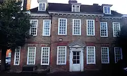 The Gilded Age American architect Horace Trumbauer also acquired a Gibbons carving for his own house in Wynnefield, Philadelphia, Pennsylvania.[36] The Cassiobury House in Bedford, New York, which was constructed from bricks salvaged from the demolished Watford mansion, may also have been fitted with interior panelling from Lord Essex's rooms. The American property featured in a short television report on NBC New York in 2011, which shows extensive wood panelling, some carved chimney pieces and 18th-century Chinese silk wallpaper.[24][37] Other materials from Cassiobury were used to restore Monmouth House in Watford High Street.[18]
