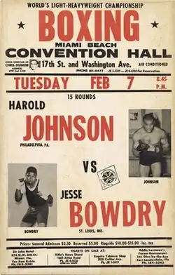 - ^ "Harold Johnson vs. Jesse Bowdry". boxrec.com. BoxRec. Retrieved 21 August 2024.