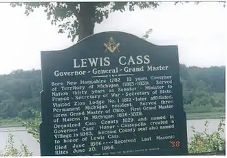 Cassopolis (/kəˈsɒpəlɪs/ kə-SOP-ə-liss) is a village in the U.S. state of Michigan and the county seat of Cass County.[4] It is located mostly in LaGrange Township with a small portion extending east into Penn Township. The village and county are named after statesman Lewis Cass, a New Hampshire native and a prominent U.S. senator from Michigan prior to the American Civil War.