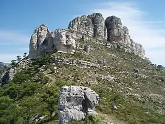 Castell de l'Airosa is a rocky mountain in the eastern side of the Ports de Tortosa-Beseit, Catalonia, Spain. Its summit has an altitude of 953.8 metres above sea level.[1]