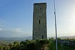 The castle was sold in 1257 to the town of San Severino by Guglielmo, Bishop of Camerino. It is located near the church of Santa Maria Annunziata. The church was rebuilt in the 19th century by Irenaeus Aleandri and houses a fresco attributed to Lorenzo Salimbeni. Around the tower of the castle are the ruins of the walls that surrounded the medieval city.[1]