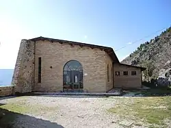 The castle overlooks the road between Popoli Terme and Sulmona. It is a typical enclosure castle, similar to many others on the Altopiano di Navelli, such as San Pio delle Camere, Barisciano, or Fossa. The plan of the walls is triangular, and at the highest vertex of the triangle, there is a spur, partially collapsed, with a trapezoidal plan. The entrance to the castle, located along the downhill side facing the village, is controlled by a square tower, lacking the inner side.[2]