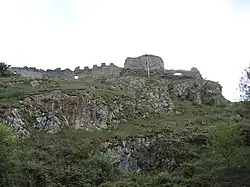Overlooking the town and the Giovenco valley, the castle remains include the ruins of the surrounding walls and a central tower.