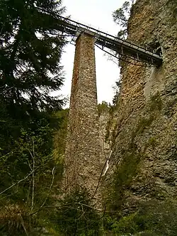 The Castielertobel Viaduct[note 1] (German: Castielertobel-Viadukt) was a single track railway bridge spanning the Castielertobelbach, and linking the municipalities of Castiel and Calfreisen, in the Canton of Graubünden, Switzerland. It was built between 1913 and 1914 for the Chur–Arosa railway, and was owned and used by the Rhaetian Railway.